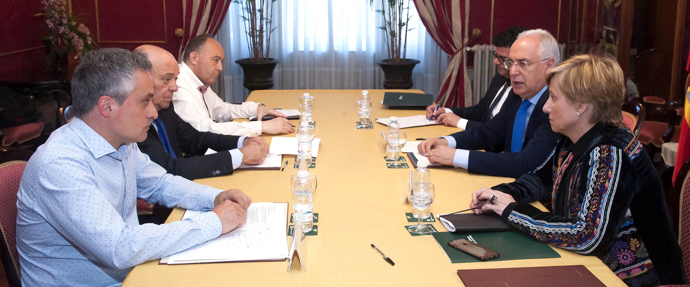 Han presentado el contenido del primer encuentro sus asistentes: el presidente del Gobierno, Jose Ignacio Ceniceros; el el consejero de Administración Pública y Hacienda, Alfonso Domínguez, que ha sido nombrado secretario; la consejera de Desarrollo Económico, Leonor González; el secretario general de UGT, Juan José Bárcenas; y el de Comisiones Obreras, Jorge Ruano.