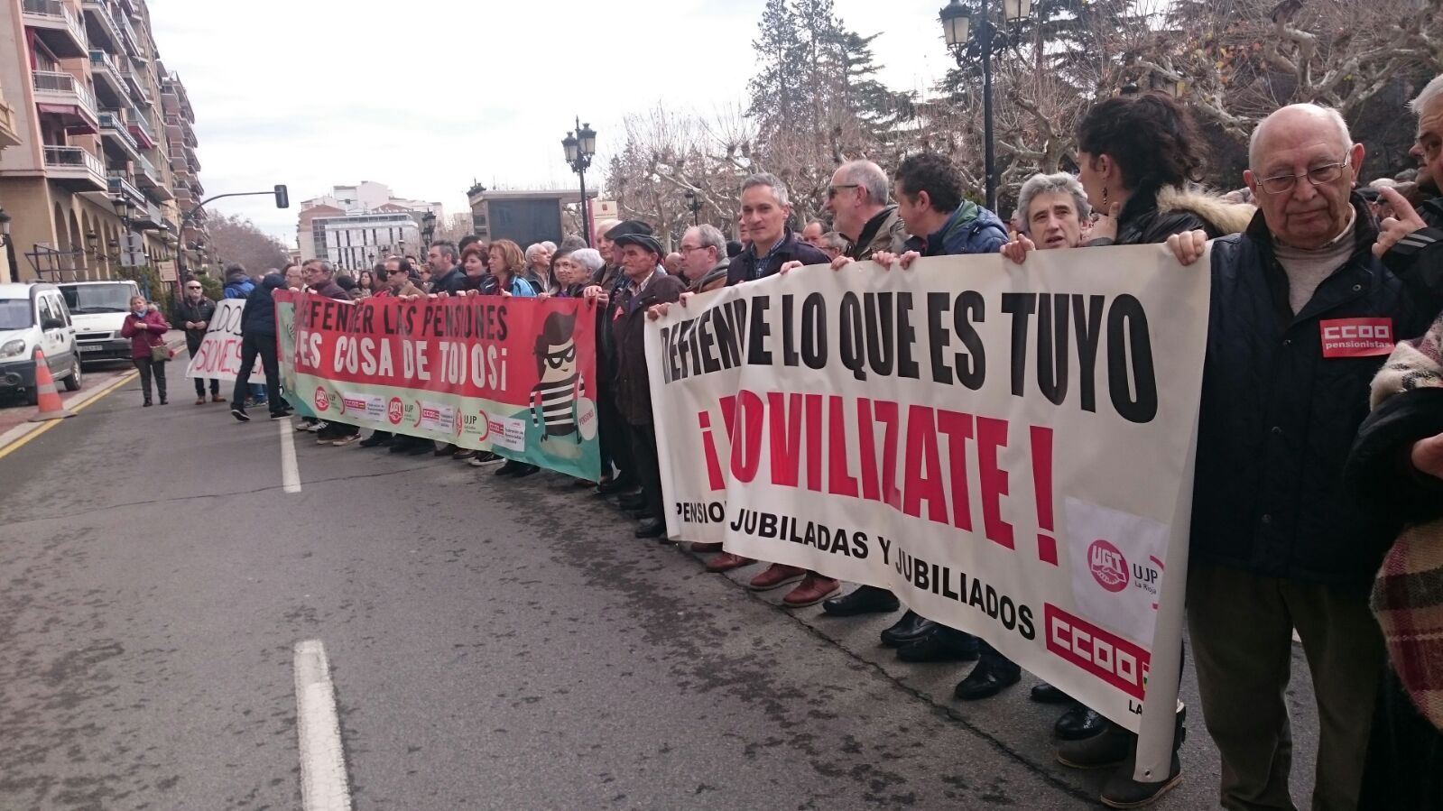 CCOO ha participado esta mañana en una multitudinaria concentración que ha exigido, frente a la Delegación de Gobierno en La Rioja, unas pensiones «dignas». La protesta, en su mayoría formada por pensionistas, ha sido convocada por los sindicatos UGT y CCOO.