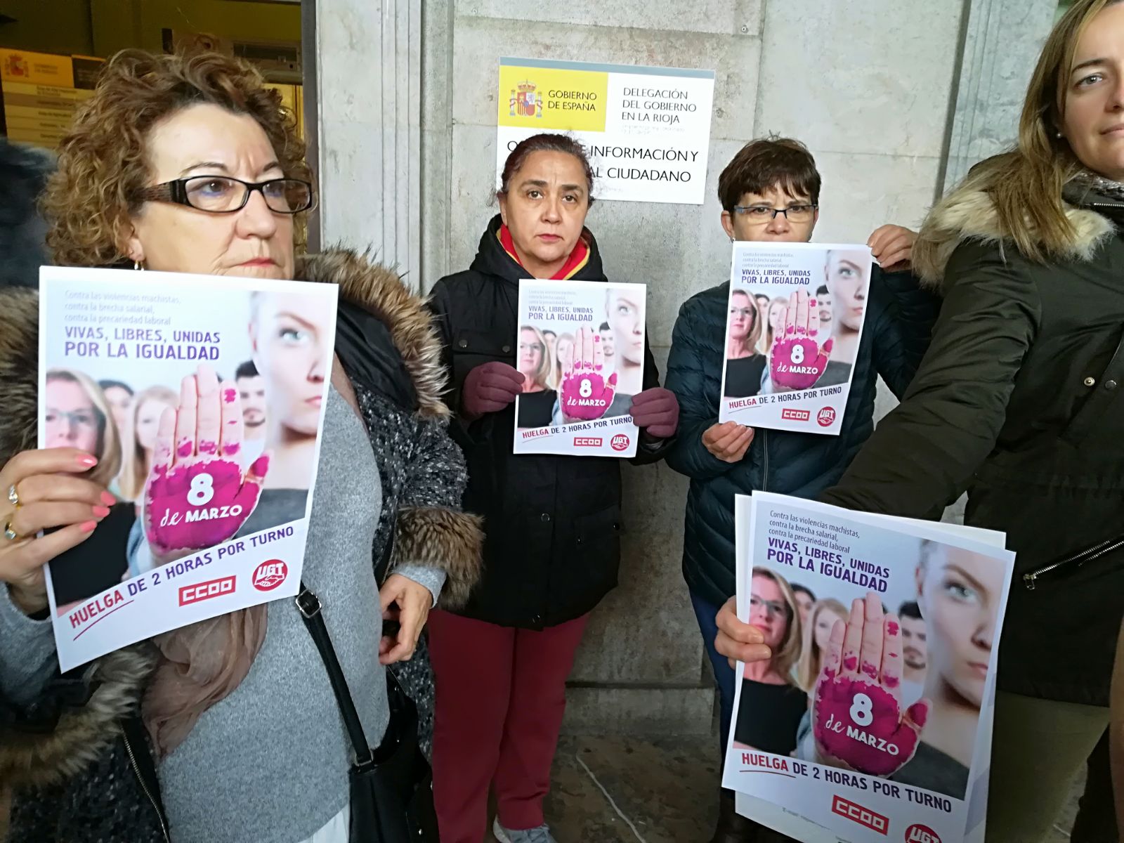 La Secretaria de Juventud, Mujeres y LGTBIQ de CCOO de La Rioja, Eunate García, acompañada de una delegación de ambos sindicatos, ha querido dejar claro que la convocatoria de CCOO y UGT es la única que ampara al conjunto de la clase trabajadora del país. Por lo tanto, toda trabajadora o trabajador que quiera secundar la huelga, lo podrá hacer legalmente con un paro de dos horas en función de su jornada laboral: de 11:30 a 13:30 quienes trabajen de mañana o a jornada partida, de 17:00 a 19:00 quienes vayan de tarde y las dos primeras horas de trabajo para quienes hagan la noche.