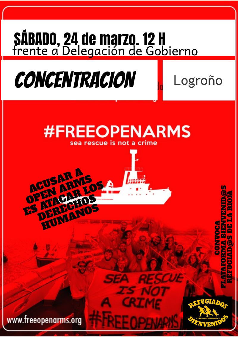 La Plataforma Bienvenidos Refugiados de La Rioja, quiere mostrar su apoyo a los compañeros de Open Arms compartiendo su manifiesto e invitando a la sociedad riojana a solidarizarse con esta causa en una concentración que tendrá lugar este sábado 24 de marzo, a las 12 horas frente a la Delegación de Gobierno en Logroño.