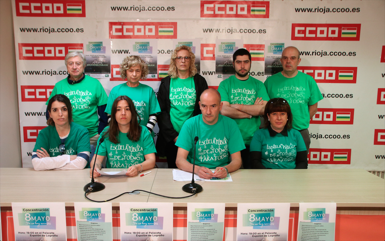 La Plataforma por la Escuela Pública de La Rioja, a la que pertenece CCOO junto con otras organizaciones sociales como EQUO, FAPA, Fde, IU, PCPE, PODEMOS, STAR, STE-RIOJA y UGT, nos vemos una vez más en la obligación de salir a las calles en todo el Estado el día 8 de mayo.