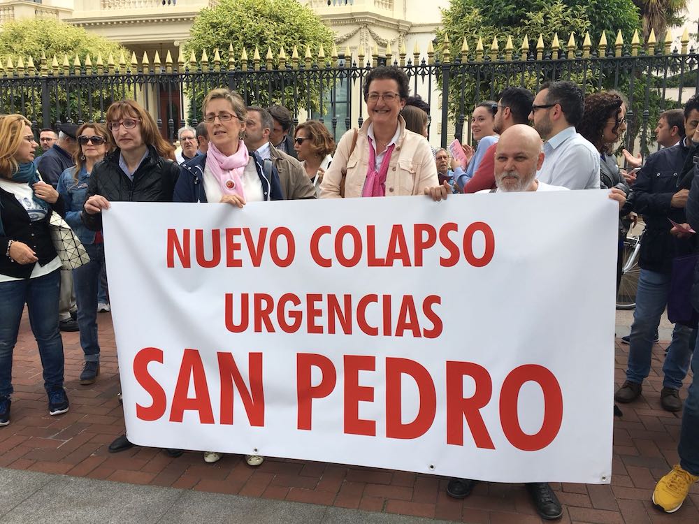 La Plataforma en Defensa de la Sanidad Pública Riojana y Comisiones Obreras no estamos dispuestos a que los colapsos en urgencias se conviertan en algo habitual. Por esta razón hemos salido hoy a la calle y nos hemos concentrado frente al Palacio de Gobierno regional para exigir una sanidad pública de calidad y que se pongan los medios para evitar nuevos colapsos. Colapsos que se producen mientras la consejera de Salud, María Martín, sigue ausente. Y es que los colapsos en urgencias no son problemas puntuales sino que se repiten cada año. Por esta razón, cada vez que las urgencias del Hospital San Pedro se colapsen saldremos a la calle para sacarle los colores al Gobierno Regional.