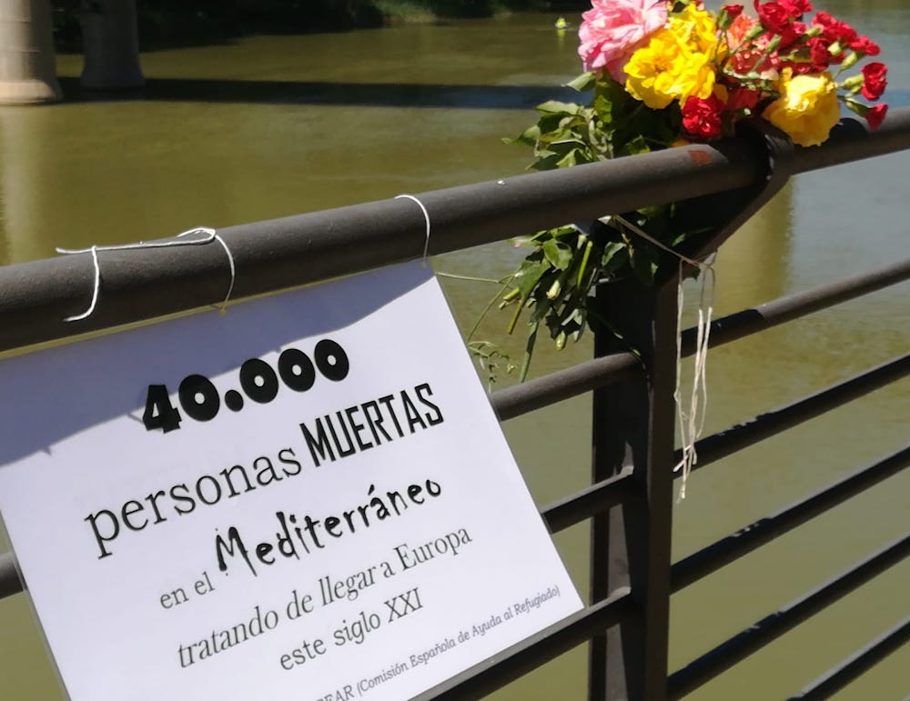 Unas 40.000 refugiados han perdido la vida en su viaje a Europa. Y, en recuerdo de todos ellos, este sábado hemos salido a la calle. Hemos querido rendir un homenaje a todos estos refugiados a los que la guerra les obliga a abandonar su casa, sus familias y, muchos de ellos también sus vidas. Así, los asistentes a este homenaje han lanzado flores en el Puente de Hierro para recordar a todas las víctimas que se han dejado la vida buscando una oportunidad.