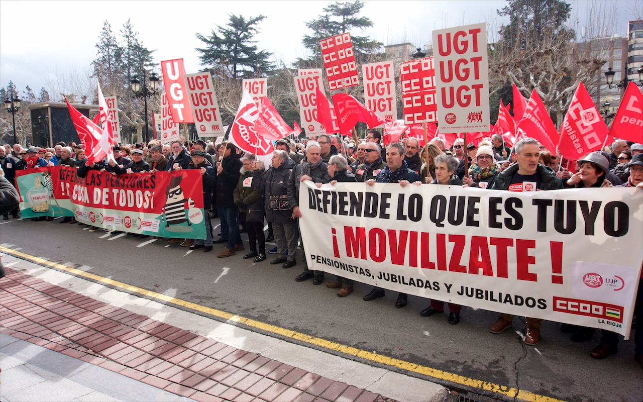 De la mano de los compañeros de UGT, los miembros de la Unión de Jubilados de CCOO de La Rioja, Maribel Zaldívar y Félix Remírez, han anunciado que este lunes, 1 de octubre, a las 12,00 horas, ambos sindicatos nos concentraremos en el Palacio de Gobierno y seguidamente frente a la Delegación del Gobierno, para exigir, entre otras cosas, la derogación de la reforma de pensiones del PP y el incremento de las mismas igual al IPC.