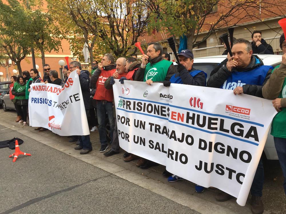 Junto a UGT, CSIF, ACAIP y CIG, CCOO ha convocado esta concentración para conseguir la mejora de las condiciones laborales de los empleados públicos de las prisiones españolas. Durante octubre y noviembre, se han celebrado varios días de huelga a nivel estatal, secundada también en el centro penitenciario de Logroño. Buscan visibilizar el abandono que sufre el colectivo y reivindicar unas mejoras salariales justas.