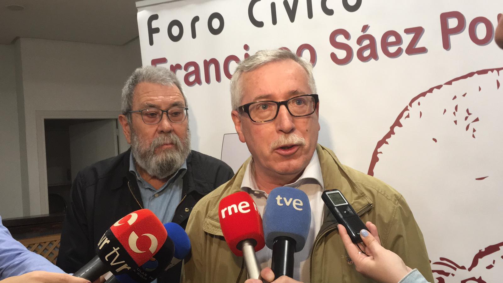 Los exsecretarios generales han realizado estas declaraciones con respecto a la nueva norma de control de la jornada laboral que ha entrado en vigor esta semana con la que consideran que se está realizando «un acto de normalización en las relaciones laborales«. Ambos han acudido a Logroño para participar en un acto invitados por el Foro Francisco Saez Porres para hablar de La Europa Social y las elecciones del 26 de mayo.