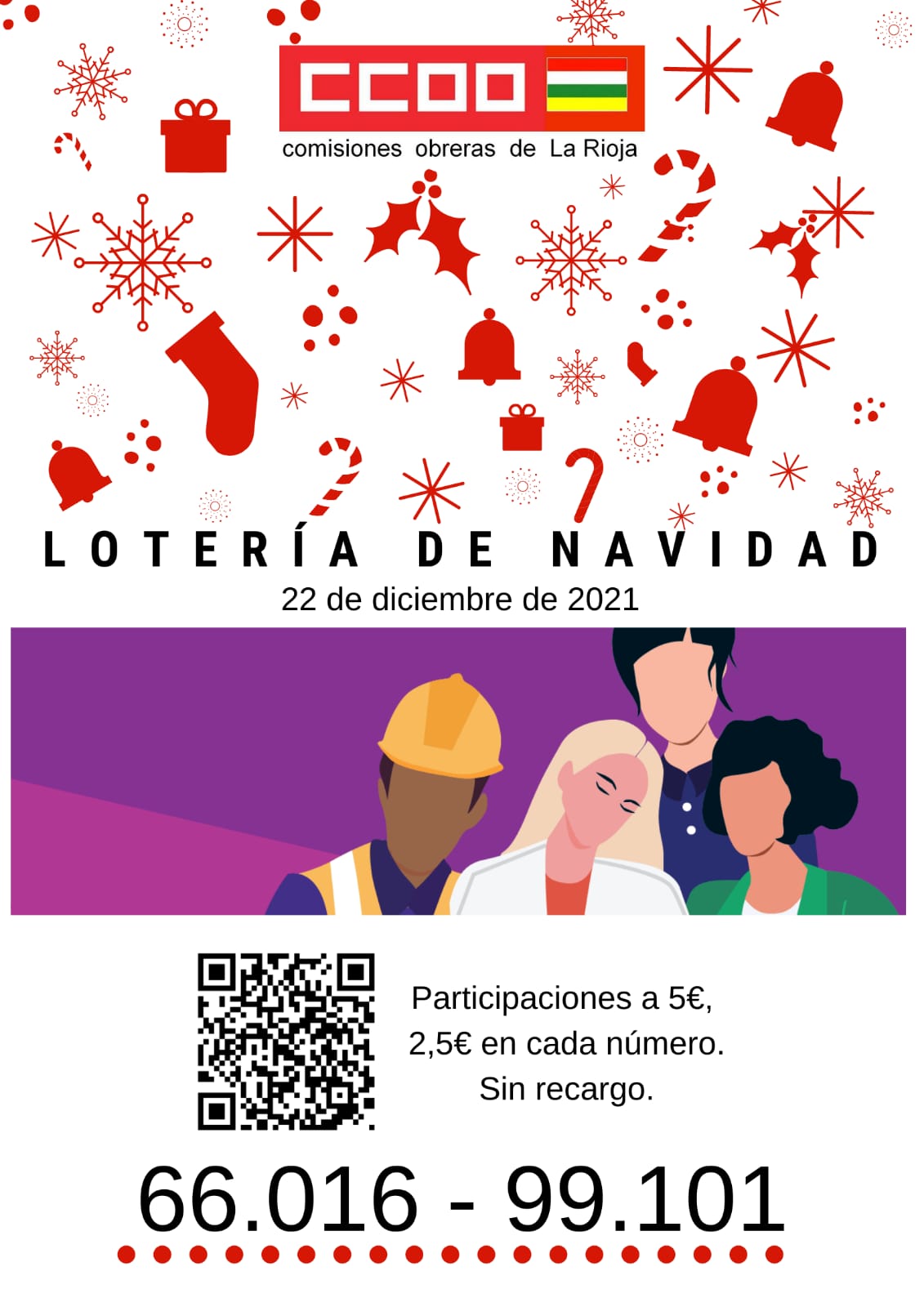 Puedes comprar on line https://www.web.elbuholotero.es/loteria-empresas (con el código ccoo) a través de nuestros delegados y delegadas. También puedes acercarte a nuestras sedes en Logroño, Arnedo, Haro y Calahorra.