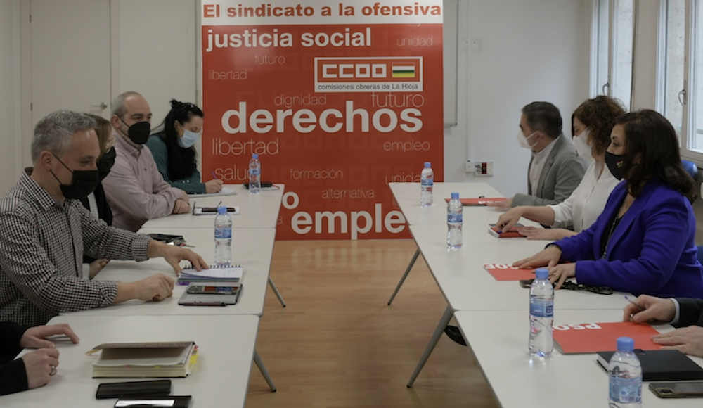 En la reunión, que se ha celebrado en la sede sindical y a la que también han acudido por parte de los socialistas riojanos la secretaria de organización, María Marrodán, y los secretarios de Industria, Comercio, Turismo y Empleo, José Ángel Lacalzada, y de Trabajo, Economía Social y Trabajo Autónomo, Ricardo Velasco.