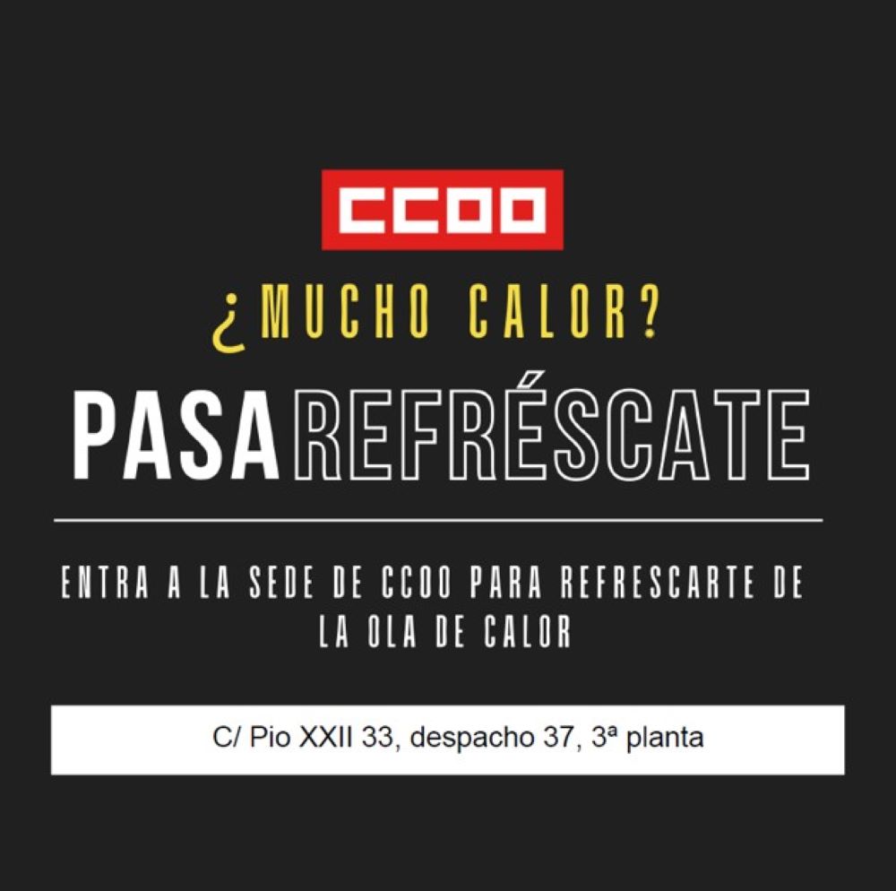 Por este motivo hemos puesto en marcha la campaña “¿Mucho calor? Pasa, refréscate” que pone la sede de CCOO de Logroño a disposición de las personas que trabajan en la vía pública.