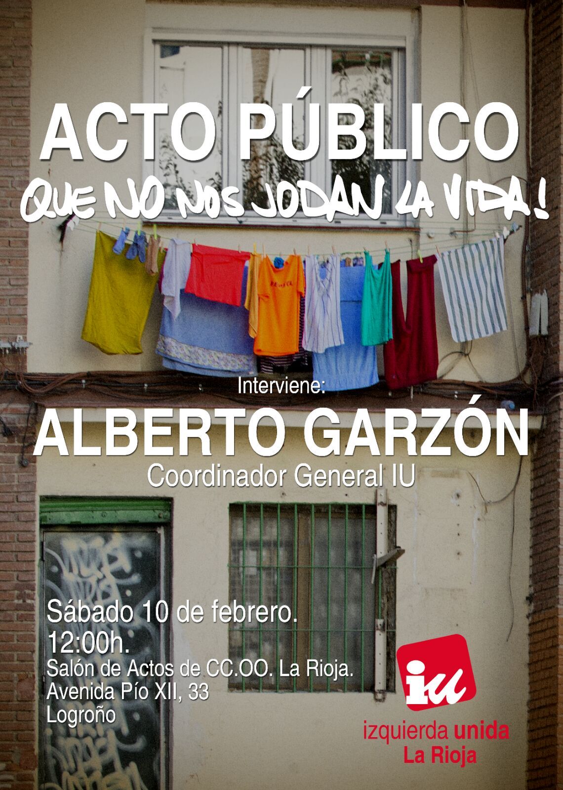 Izquierda Unida La Rioja organiza el acto público Que no nos jodan la vida! con el coordinador general de IU Alberto Garzón.