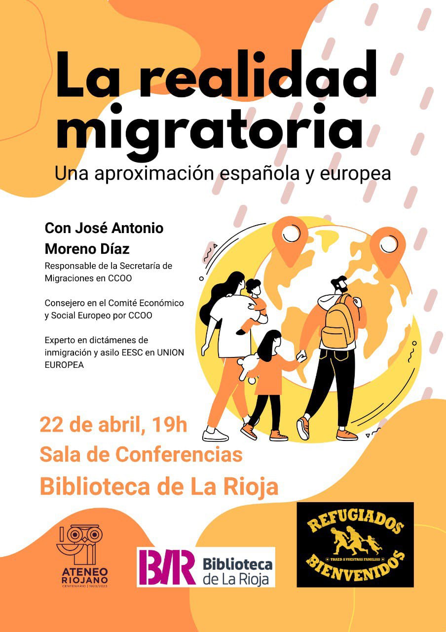 El responsable de la Secretaría de Migraciones en CCOO, José Antonio Díaz, ofrece una charla para hacer una aproximación española y europea a la realidad migratoria. Será el 22 de abril a las 19 horas en las Sala de Conferencias de la Biblioteca de La Rioja.