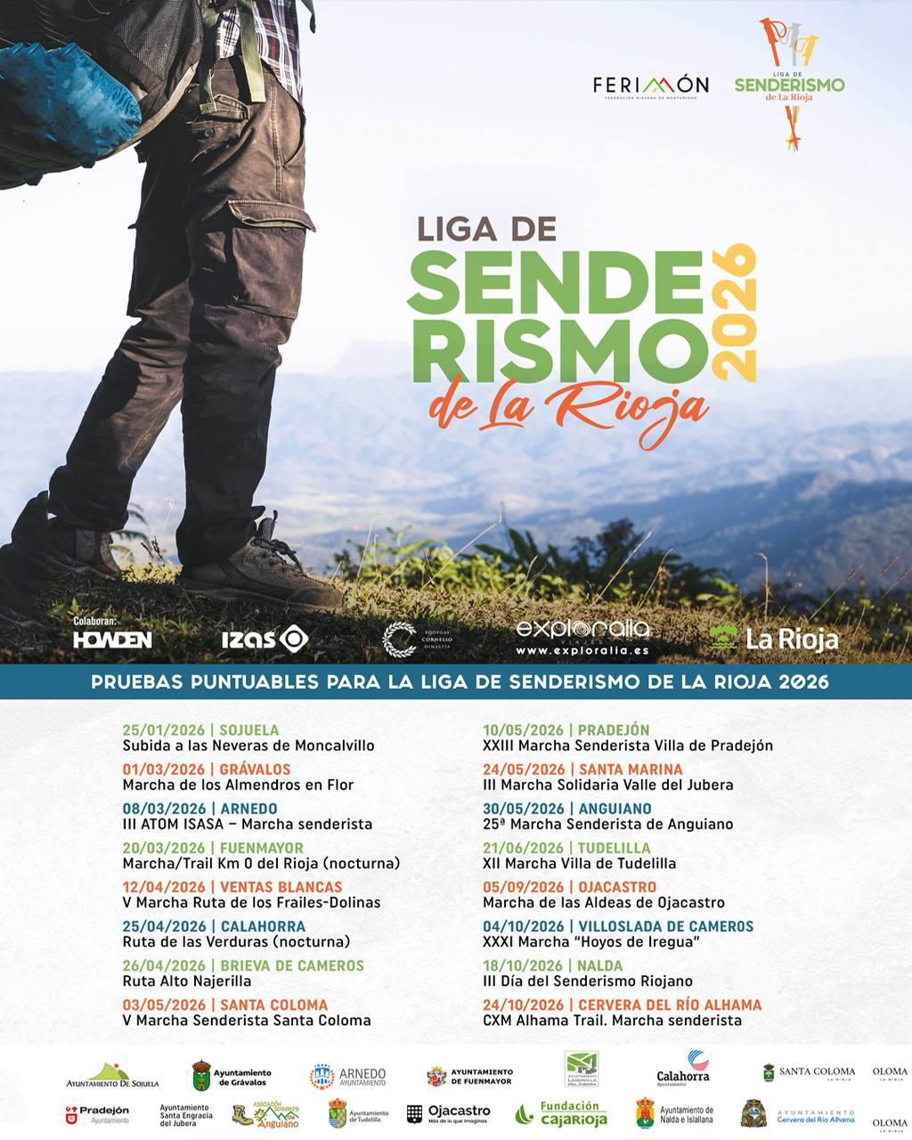 La Federación Riojana de Montañismo presenta el calendario oficial de pruebas puntuables para la Liga de Senderismo 2026. Una excelente oportunidad para recorrer nuestro territorio, fomentar hábitos saludables y disfrutar del patrimonio natural de La Rioja a través de diversas marchas y rutas organizadas en distintas localidades.