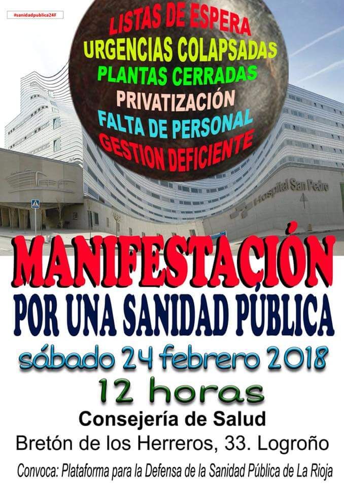 La Plataforma para la Defensa de la Sanidad Pública de La Rioja convoca una manifestación en defensa de la sanidad pública.
