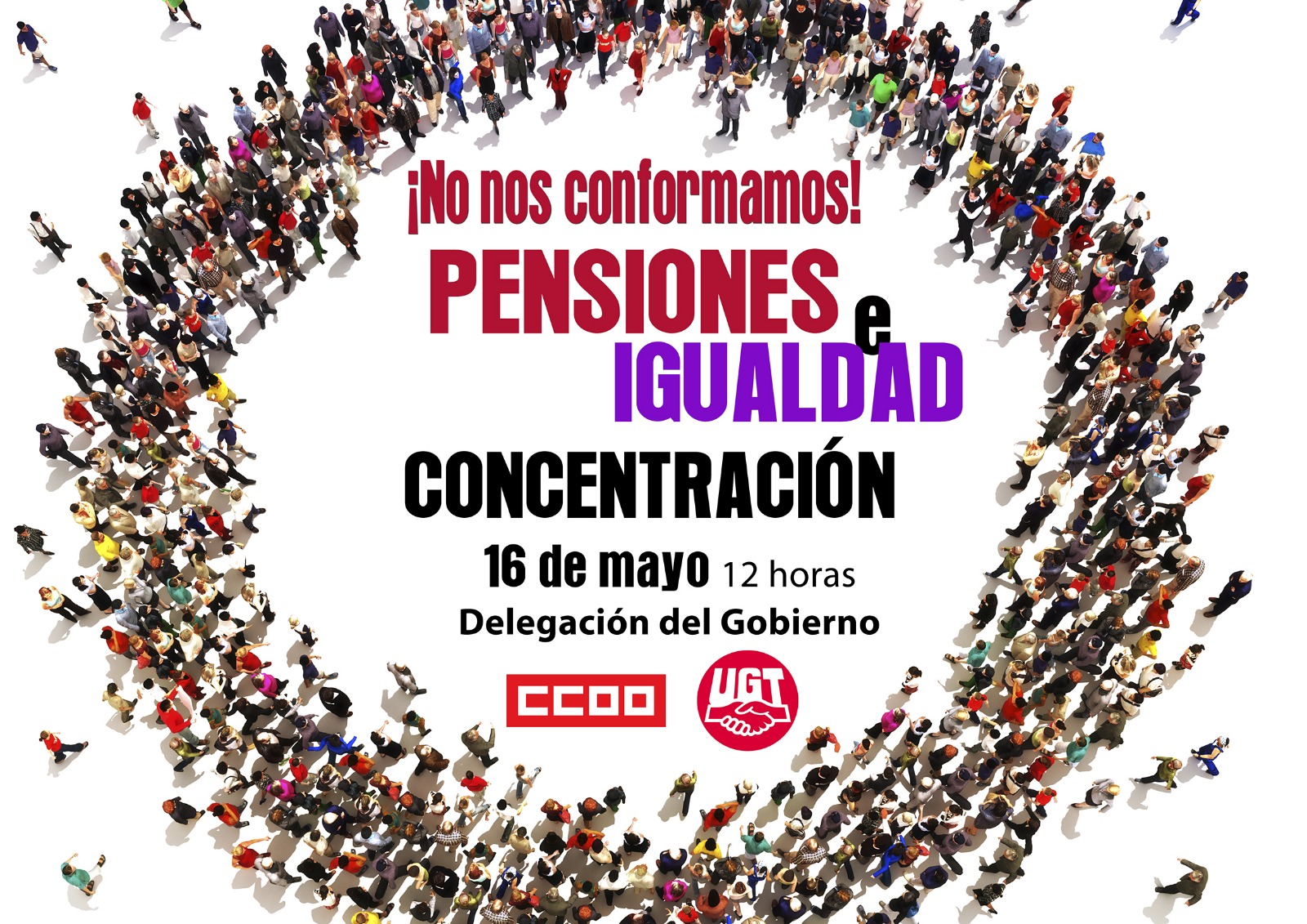Este 16 de mayo volveremos a salir de a calle para gritar bien alto que no nos conformamos. Nos vemos este 16 de mayo a las 12 horas en la Delegación del Gobierno, ¡¡Te esperamos!!!